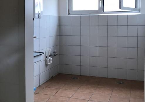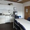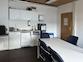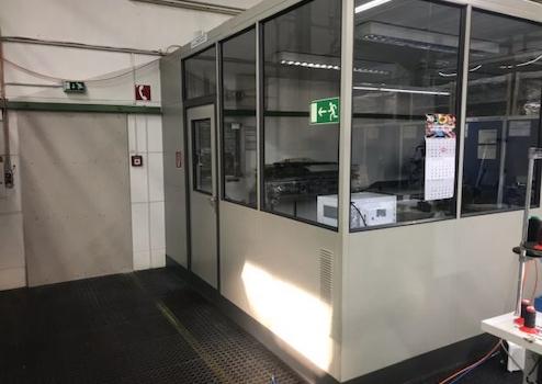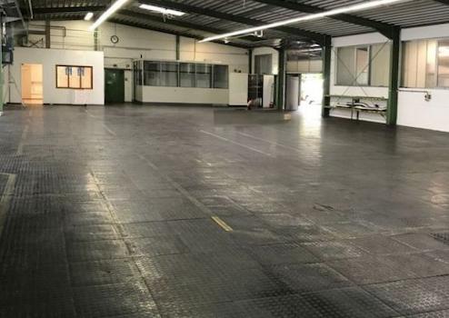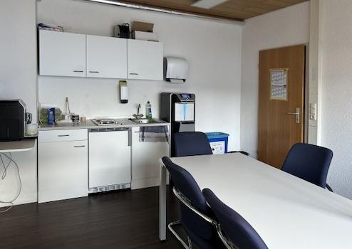 Die Produktionshalle mit rutschhemmenden PVC-Noppenbelag auf Beton ist vom Bürobereich über zwei Türen oder über ein ca. 4 m x 3 m elektrisch betriebenes Sektionaltor erreichbar. Sie ist aufgrund der umlaufenden Fensterfront und den Dachflächenfenstern sehr hell. Zusätzlich sind Lichtbänder vorhanden. Im mit Laminat ausgelegten Aufenthaltsraum mit großer Fensterfront ist eine vollwertige Einbauküche verbaut. Der Flur und die WC-Anlage sind gefliest. Vom verglasten Meisterbüro mit Leuchten und PVC-Boden ist die Produktionsfläche gut einsehbar. Im Lager mit den Hausanschlüssen ist Laminatboden verlegt. Es sind viele Starkstromanschlüsse vorhanden.