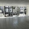 Die gesamte Verkaufsfläche ist gefliest. Die Deckenkonstruktion ist eine Akkustikdecke mit herrausnehmbaren Deckenplatten.