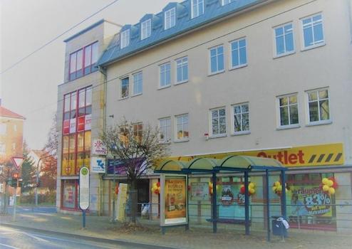 Die Waltershäuser Straße führt zum Zentrum der Stadt. An der Kreuzung 18.-März-Straße steht unser repräsentatives Geschäftshaus. Das Gebäude steht in einer verkehrsgünstigen Lage, da die Straßenbahnhaltestelle sich unmittelbar neben dem Gebäude befindet. Das Objekt verfügt über einen eigenen Parkplatz und wird ganzjährig von einem Hausmeister gepflegt.