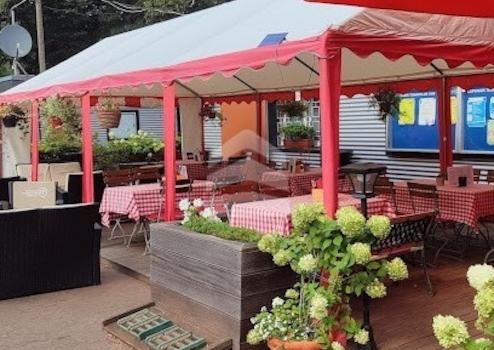 • Eine Vereinsgaststätte mit Küche, Gastraum und Terrasse