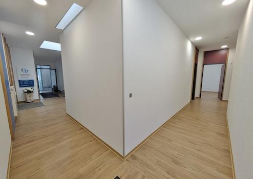 Die Praxiseinheit ist mit einem neuen PVC-Boden in stilvoller Holzoptik und frisch gestrichenen Wände in strahlendem Weiß ausgestattet, welche eine angenehme Atmosphäre schaffen. Moderne LED-Beleuchtung und Lichtkuppeln sorgen für eine optimale Ausleuchtung, während die zentrale Lüftungsanlage stets für frische Luft sorgt. Für Ihre Patienten steht ein gemeinschaftlich genutztes Patienten-WC zur Verfügung, welches vom Wartebereich zu erreichen ist. Ihrem Team steht ein separates Mitarbeiter-WC zur Verfügung.