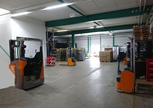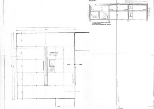 2- geschossig mit je ca. 1000 m². Raumhöhe EG min. 4,00m, OG min. 2,75m. Lastenaufzug mit 3 t vorhanden. Sehr gute Beleuchtung, mit Fenstern, im OG grosse Lichtkuppel im Dach.