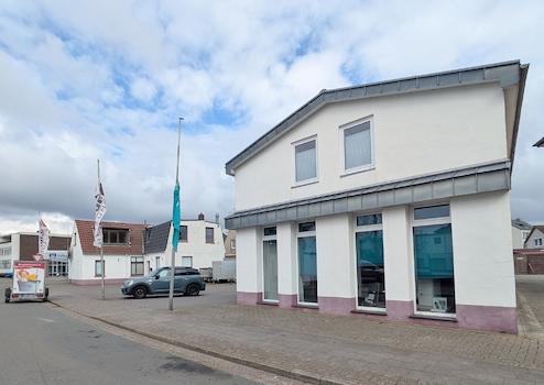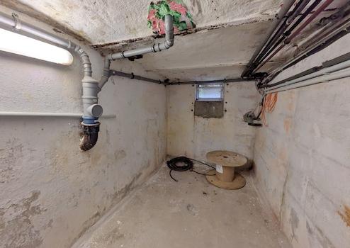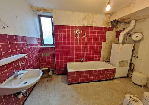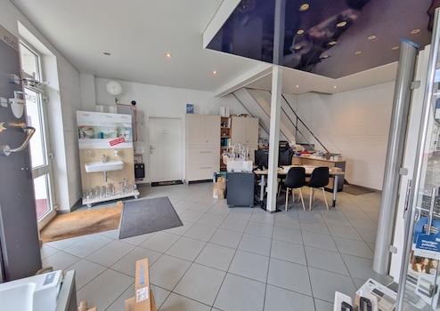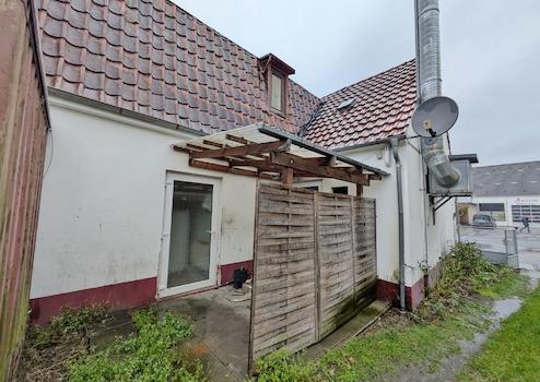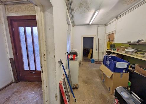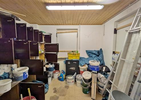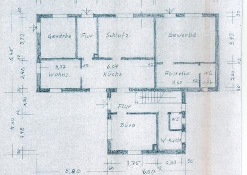- Im vorderen Bereich steht ein historisches Wohn- und Geschäftshaus, das vermutlich Anfang des 20. Jahrhunderts errichtet wurde. Dieses Gebäude ist stark sanierungsbedürftig und bietet Potenzial für kreative Umgestaltungen oder einen Neubau. Der erste Eintrag in der Bauakte datiert auf 1962, als die Imbissfläche ausgebaut wurde. Diese Fläche befindet sich derzeit im Rohbauzustand. Das Erdgeschoss beherbergt vier ungeheizte Lagerräume, während im Dachgeschoss eine leerstehende Wohnung auf neue Nutzungsmöglichkeiten wartet.