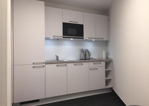 Jede Etage verfügt über eine gut ausgestattete Teeküche sowie moderne sanitäre Einrichtungen.
