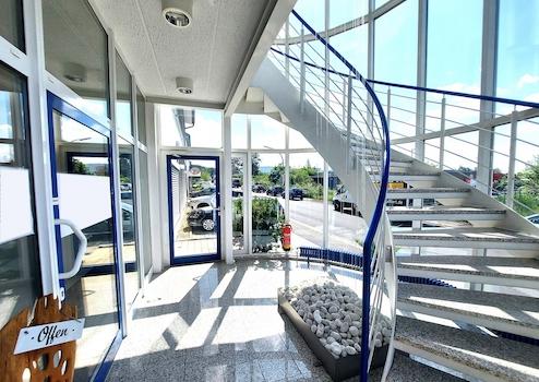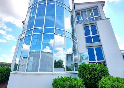 In zwei durch einen spiegelverglasten Verbindungsbau zusammenhängenden Bürokomplexen, modern und hochwertig ausgestattet, stehen Ihnen über zwei Etagen Büro- und/oder Praxisräume teilbar ab 20 m² bis 450 m² zur Verfügung. Büroräume können individuell nach Ihrem Flächenbedarf aufgeteilt werden. Kleinere Büroeinheiten sind ebenfalls möglich. Zur Ausstattung der Räumlichkeiten gehören u.a. bodentiefe Fenster mit Außenjalousien, getrennte Damen- und Herren-Sanitäranlagen, Teeküche und ein Serverraum. Die Räumlichkeiten sind teils mit Teppichböden, teils mit Fliesen ausgestattet. Die innovative Haustechnik bietet ein 3-Kreis-System (Heizen/Kühlen), Designerlampen mit optimaler Beleuchtung sowie Doppelböden. Zum Objekt gehörige Stellplätze befinden sich direkt vor dem Gebäude.
