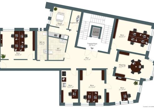 - Raumgrößen für 2er bzw. 4er Büroeinheiten