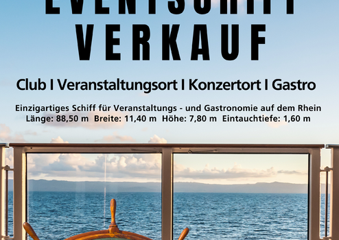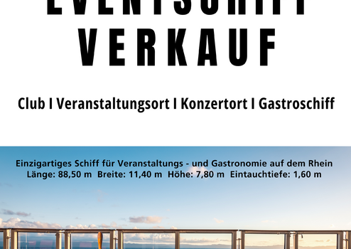 Ein eindrucksvolles Veranstaltungs- und Eventschiff, bietet eine einzigartige Investitionsmöglichkeit. Derzeit als angesagter Club auf dem Rhein in der Schweiz genutzt, steht dieses umgebaute Frachtschiff zum Verkauf. Es bietet nicht nur eine herausragende Lage, sondern auch eine vielseitige Nutzungsmöglichkeit als Gastronomie- oder Veranstaltungsschiff und weiteren individuelle Möglichkeiten.