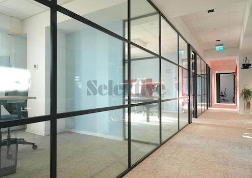 Alle 2-3 Pers.-Büros sind durch große Glaswände akustisch voneinander getrennt. Dennoch bietet sich damit auf der gesamten Fläche ein sehr offenes und modernes Raumgefühl.