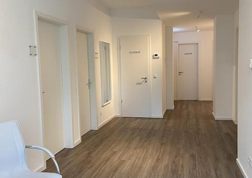 - 1 Behandlungs-/Mehrzweckraum (18,7 m²) mit integriertem Waschtisch – perfekt für therapeutische Angebote, Kosmetik, Fußpflege oder ähnliche Dienstleistungen