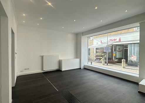 Der Verkaufsraum verfügt über eine große, einladende und helle Schaufensterfront.