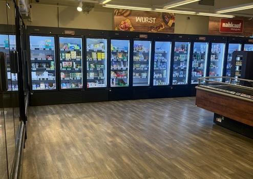 Das Ladenlokal ist mit Vinyl Laminat ausgestattet die Lager und Produktionsflächen sind gefliest. Im Ladenlokal ist eine fast neue REWE Regalerie mit Kühlgeräten! und Agregate ausgestattet.