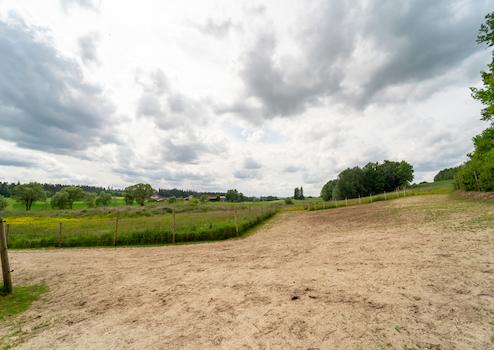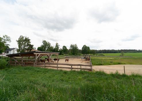 - Außenanlagen: Weitläufige Koppeln und Reitplatz