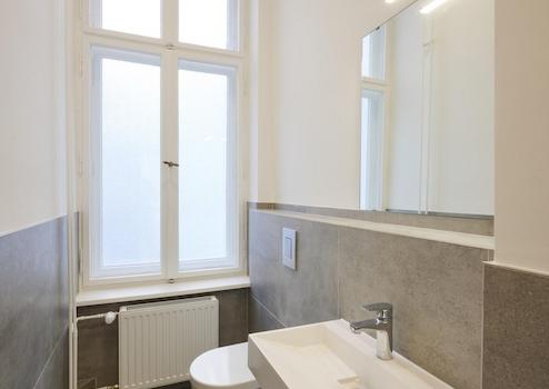 Erstbezug nach umfangreicher Sanierung der Fläche. Alle horizontalen und vertikalen Leitung in und durch die Einheit wurden erneuert. Dies umfasst nicht nur die Elektro- und Netzwerkinstallation, sondern auch sämtliche durchführenden Sanitärleitungen. Das WC wurde neu gestaltet und mit modernen Fliesen und Objekten ausgestattet. Es wurde eine neue Küche mit Geschirrspüler und einer Kühl-/Gefrierkombination eingebaut. Alle Wände sind gespachtelt. Alle Parkettböden wurden aufgearbeitet, im Berliner Zimmer und den hinteren Zimmern wurde neues Eichenparkett verlegt. Die Decken im hinteren Bereich wurden gedämmt. u.v.m.