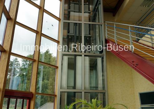 Das Obergeschoss ist über einen Aufzug und über das offene und helle Treppenhaus erreichbar.