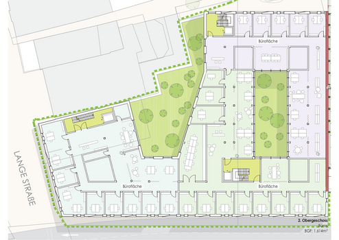 gängerzone Lange Straße entsteht ein modernes Stadtquartier mit vielseitiger Mischnutzung. In diesem hochwertigen Umfeld werden repräsentative Büro- und Praxisflächen im 2. Obergeschoss angeboten, die sich ideal für Dienstleister, beratende Berufe und medizinische Konzepte eignen.