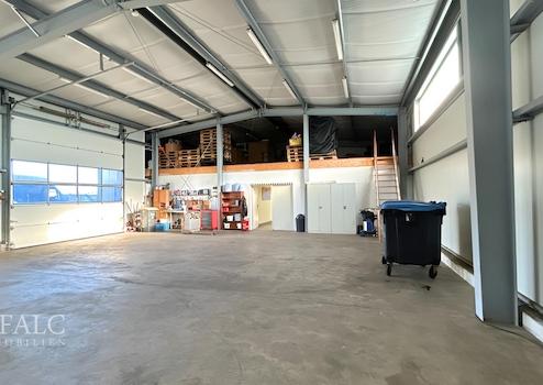 Ein zentrales Highlight des Objekts ist die großzügige Halle mit ca. 208 m², die direkt von den Büroräumen aus zugänglich ist. Sie bietet Platz für bis zu fünf PKW und ist zudem für die Befahrung mit einem 40-t-LKW geeignet. Die Halle verfügt über ein Rolltor, Starkstrom- und Druckluftanschlüsse und eignet sich somit ideal für handwerkliche, technische, logistische oder gewerbliche Nutzungen.