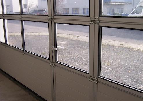 Die Deckenhöhe beträgt 5,70 m UKB und die Halleneinfahrt eignet sich durch ein großes Sektionaltor (Maße 5,00 m breit x 5,00 m hoch) auch für größere Fahrzeuge.