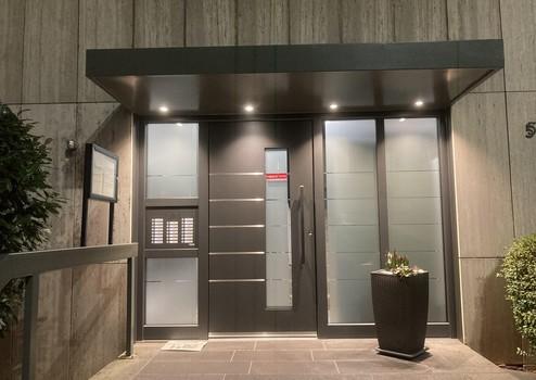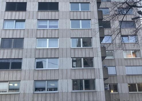 Die Eigentumswohnungen befinden sich im Erdgeschoss eines gepflegten Hochhauses mit 23 Parteien mit sowohl Privatwohnungen als auch Praxen und Büros. Der Zugang ist barrierefrei, ein Aufzug führt sowohl zu den höher gelegenen Etagen als auch in den Keller.