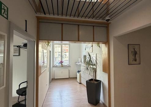 Die vorhandene Raumstruktur bietet mehrere Behandlungs-/Büroräume, Sanitäranlagen, einen großzügigen Empfangsbereich sowie vielseitig nutzbare Nebenflächen. Durch den historischen Charakter des Gebäudes entsteht ein besonders charmanter, repräsentativer Gesamteindruck.
