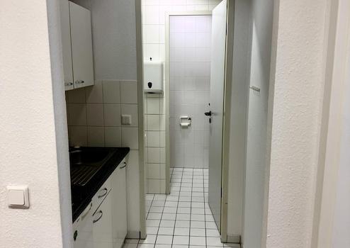 Ursprünglich war der Hauptbereich durch eine Trennwand mit zwei separaten Türen in zwei Räume aufgeteilt. Diese Trennwand wurde entfernt, sodass derzeit ein großzügiger, offener Raum zur Verfügung steht – ideal für Konzepte, die viel Fläche benötigen. Die beiden Türen sind jedoch weiterhin vorhanden und ermöglichen bei Bedarf eine unkomplizierte Wiederherstellung der ursprünglichen Raumaufteilung.