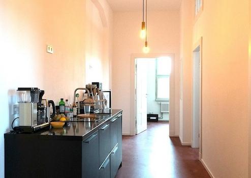 Die Einheit befindet sich in einem historischen Gewerbe-Atelierhaus und kann sowohl als Büro oder Atelier genutzt werden. Die ehemalige Villa Heike wurde 2019 kernsaniert und ist in einem sehr guten Zustand. Die Einheit hat drei Zimmer, eine Küche im Flur und ein modernes Duschbad. Die Türen und Fenster sind im Original erhalten, der Fussboden ist ein restaurierter, dunkelroter Calziumsulfatestrich. Die übrigen Einheiten in dem Haus sind an Künstler oder an Einzelfirmen und Freischaffende aus der Kreativszene vermietet.