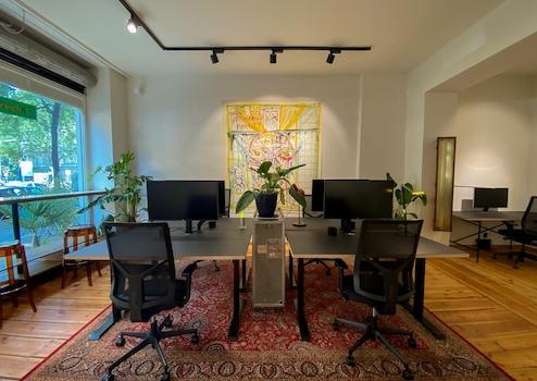 – Meetingraum mit Platz für 6-8 Leute, zusätzlich nutzbar als Werkstatt, Kino, Musik- und Podcaststudio