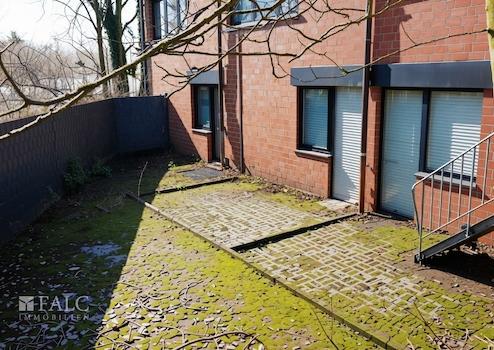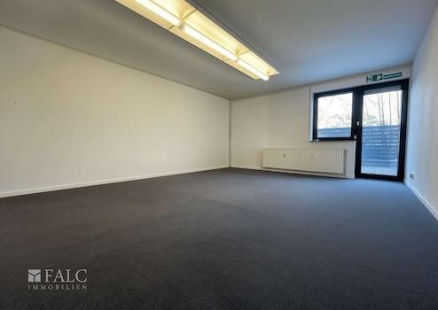 Die derzeit leerstehende Einheit im Erdgeschoss/Souterrain verfügt über einen direkten Zugang zu einer Terrasse und bietet damit zusätzlichen Nutzwert für Mitarbeiter oder Kunden.