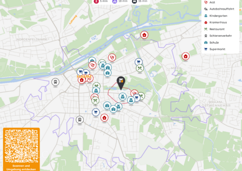 Ein weiterer Pluspunkt für Investoren: In der Umgebung befinden sich zahlreiche Einrichtungen des täglichen Bedarfs sowie medizinische Versorgung, was die Lage für unterschiedliche gewerbliche Nutzungen – von Büro über Beratung bis Verwaltung – besonders interessant macht. Parkmöglichkeiten und E-Ladepunkte in der Nähe runden das Gesamtbild ab.