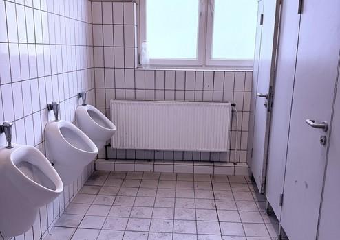 Die WC-Anlage verfügt über 3 Urinale und 3 Toilettenkabinen.