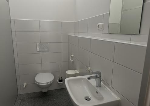 Ein praktischer Pluspunkt ist die integrierte Teeküche mit Spüle, Stauraum und Arbeitsfläche. Sie ist ideal für die schnelle Kaffeepause oder das Mittagessen im Büro. Ergänzt wird das Angebot durch ein gepflegtes WC mit Waschbecken.