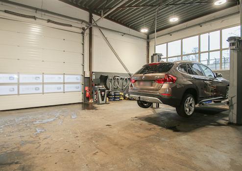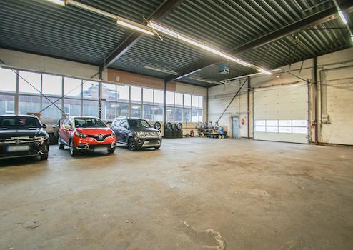 2. Lagerhalle mit Freifläche: Weiteren Platz bietet die flexibel nutzbare ca. 360 m² große Lagerhalle mit ca. 160 m² Freifläche. Hier liegt eine Nutzungsänderung als KFZ-Reparatur-/Mietwerkstatt mit sieben Hebebühnen und Lackierkabine vor.