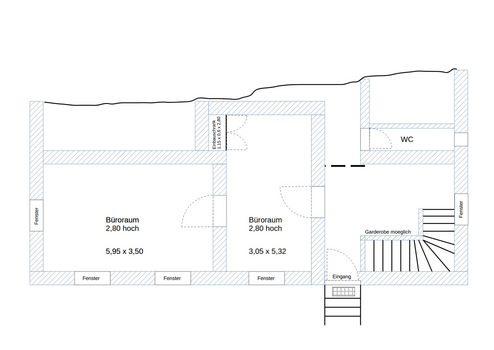 Die Räume sind neu renoviert und haben eine Höhe von 2,75m