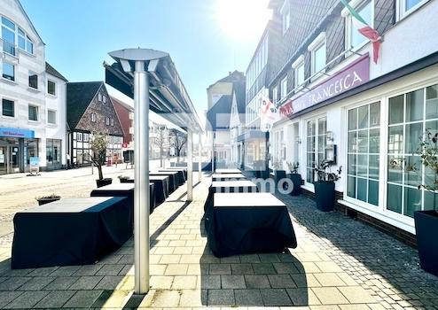 Durch die günstige, zur Fußgängerzone ausgerichtete Lage des Restaurants profitiert dieses zudem von der angrenzenden öffentlichen Fläche, die eine Bewirtung weiterer ca. 45 Außenplätzen mit riesiger elektrischer Markise erlaubt.