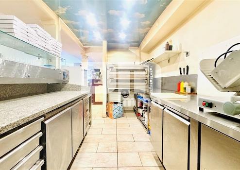 An diesen schließt sich im EG der Gastronomiebetrieb mit einer Nutzfläche von ca. 140m², dessen Herzstück der große Hauptraum mit Tresen + Pizzastation und gemütlichem Kaminofen bildet.