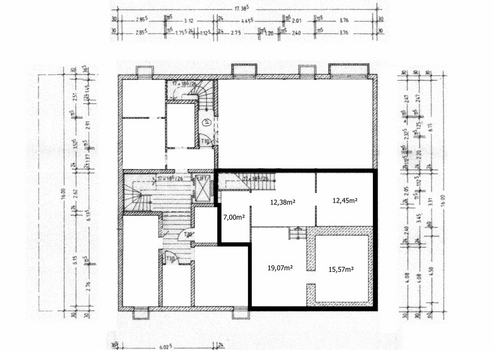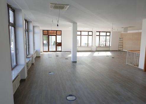 Ggf. besteht auch die Möglichkeit die Räume aufzuteilen in zwei getrennte Einheiten (zwischen 70-130 qm).