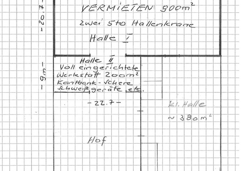 Halle I: ca. 900 m², 2 × Krananlage à 5 Tonnen, Tageslicht