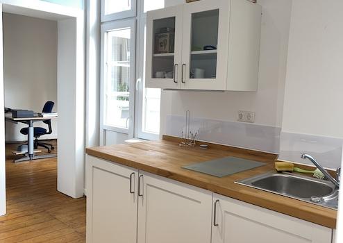 Schreibtische, Bürostühle, Küche und Tagungstische mit Stühlen sind im Preis enthalten.