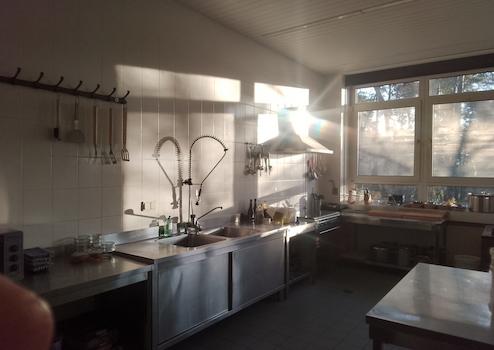 Die 14m³ Kühlzelle bis 7 C°, der Güteraufzug, die 2xContainer, die Theke aus Buchenholz sind im Preis enthalten.