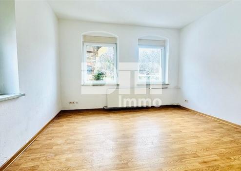 Hier befinden sich das helle Wohn-/Esszimmer, eine geräumige Wohnküche mit separatem Zugang / großem Voratsraum sowie ein Gästezimmer/Büro und ein Badezimmer mit Wanne.