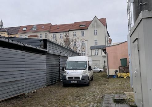 - Einfahrt: Große, befestigte Zufahrt für LKW und Transporter