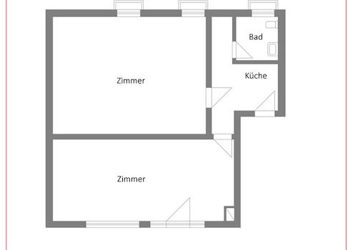 Der Grundriss teilt sich in einen straßenseitigen Bereich mit Kundenkontakt sowie einen rückwärtigen Raum, der als Büro, Lager-, Behandlungs- oder Arbeitsbereich genutzt werden kann. Diese Aufteilung hat sich in der Praxis bewährt und erleichtert unterschiedliche Nutzungskonzepte.