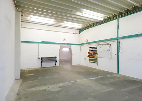 Die angebotene Gewerbeeinheit befindet sich in einem soliden Gewerbebau aus dem Baujahr 1990 und bietet eine Gesamtfläche von rund 175 m², die sich in ca. 88 m² Büroflächen und ca. 87 m² Lagerflächen aufteilt. Der Lagerbereich ist ebenerdig über ein Sektionaltor andienbar und eignet sich durch seine klare Geometrie, die vorhandene Hallenhöhe sowie die robuste Bodenbeschaffenheit ideal für Lager-, Montage- oder Produktionszwecke. Großzügige Fensterflächen sorgen für eine natürliche Belichtung, während die Stahlkonstruktion und der Industrieboden eine funktionale und langlebige Nutzbarkeit ermöglichen. Direkt angrenzend befindet sich der Verwaltungsbereich mit mehreren Büroräumen, Sanitäranlagen, Teeküche sowie Flur- und Abstellbereichen. Die Büros wirken hell und freundlich, verfügen über große Fensterflächen und bieten eine angenehme Arbeitsatmosphäre für Administration, Disposition oder Kundenkontakt. Durch die Kombination aus Lager und Büro eignet sich die Einheit besonders für kleine bis mittelständische Unternehmen aus den Bereichen Handel, Handwerk, Produktion, Logistik oder E-Commerce, die eine kompakte, gut nutzbare und wirtschaftlich sinnvolle Gewerbelösung suchen.