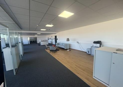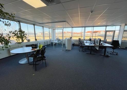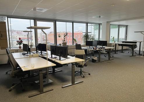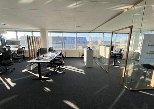 Moderne, helle Bürofläche mit großen Fensterfronten
