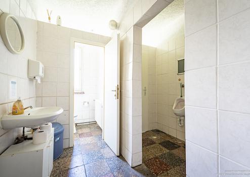 Der professionelle Küchenbereich ist funktional angelegt und auf einen reibungslosen Gastronomiebetrieb ausgelegt. Ergänzt wird dieser durch einen separaten Spülraum sowie zwei praktische Lager- und Abstellräume, die ausreichend Stauraum für Waren, Technik und Betriebsmittel bieten. Getrennte WC-Anlagen für Damen und Herren mit entsprechenden Vorräumen erfüllen die Anforderungen an eine gewerbliche Nutzung im Gastronomiebereich.