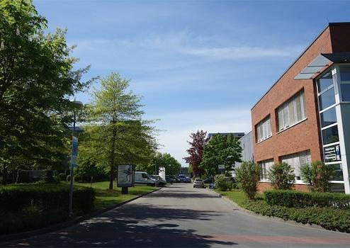 Die Halle befindet sich auf einem Gewerbepark.