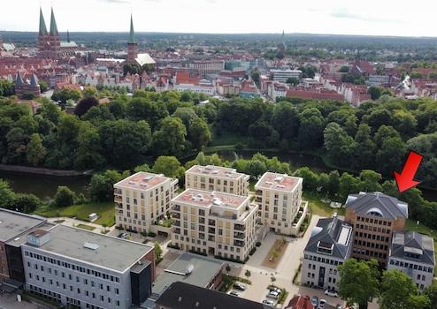 Unmittelbar vor den Toren der Altstadt von Lübeck, direkt am Wasser und nur wenige Minuten vom Hauptbahnhof entfernt – das NEUE WALLUFER vereint eine erstklassige Mikrolage mit optimaler Erreichbarkeit. Hier profitieren Unternehmen von einer repräsentativen Adresse, kurzen Wegen in die Innenstadt und einer hervorragenden Verkehrsanbindung. Arbeiten in direkter Wasserlage schafft ein Umfeld, das Produktivität und Aufenthaltsqualität ideal verbindet.