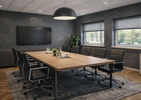 Ergänzend sieht das Konzept zwei verglaste Besprechungsboxen (ca. 4,45 m² und ca. 8,50 m²) vor, die als moderne Raum-in-Raum-Lösungen innerhalb der Fläche positioniert sind. Diese bieten akustisch abgeschirmte Rückzugsorte für vertrauliche Gespräche, kurze Abstimmungen oder konzentriertes Arbeiten, ohne die Offenheit der Gesamtstruktur zu verlieren. Die transparenten Elemente sorgen dabei für ein modernes Erscheinungsbild und klare Sichtachsen.