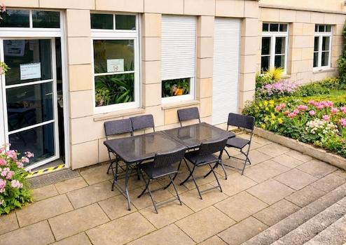 Eine Terrasse zur ruhigen Hofseite bietet zusätzlichen Aufenthaltskomfort.