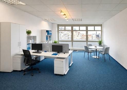 Diese ruhige und lichtdurchflutete Bürofläche zur Hofseite bietet ideale Voraussetzungen für ein angenehmes und konzentriertes Arbeiten. Große Fensterflächen sorgen für eine freundliche Atmosphäre, während elektrische Außenjalousien einen optimalen Sonnen- und Blendschutz gewährleisten.