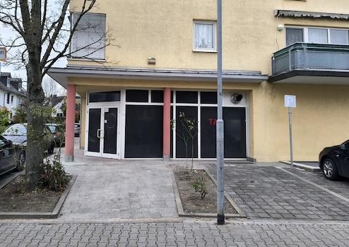 Bereits von außen überzeugt die Einheit durch ihre klare, funktionale Anordnung: ein überdachter Eingangsbereich, breite Glasflächen und eine präsente Front zur Erschließung. Im direkten Umfeld der Einheit sind befestigte Außenflächen vorhanden, die sich je nach Genehmigung und Konzept als Vorzone für Gäste oder als praktische Anliefer und Wartebereiche nutzen lassen.